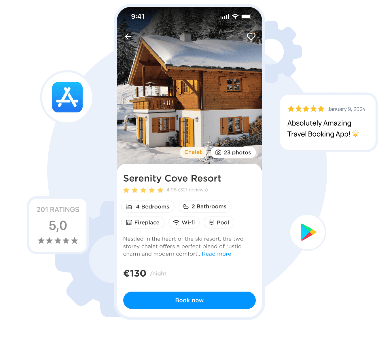 We utilize pre-built solutions for essential features like authentication, user profiles, search functionality, and booking flow integrations. These components are fully customizable to fit your app’s unique needs, significantly reducing development time and cost.