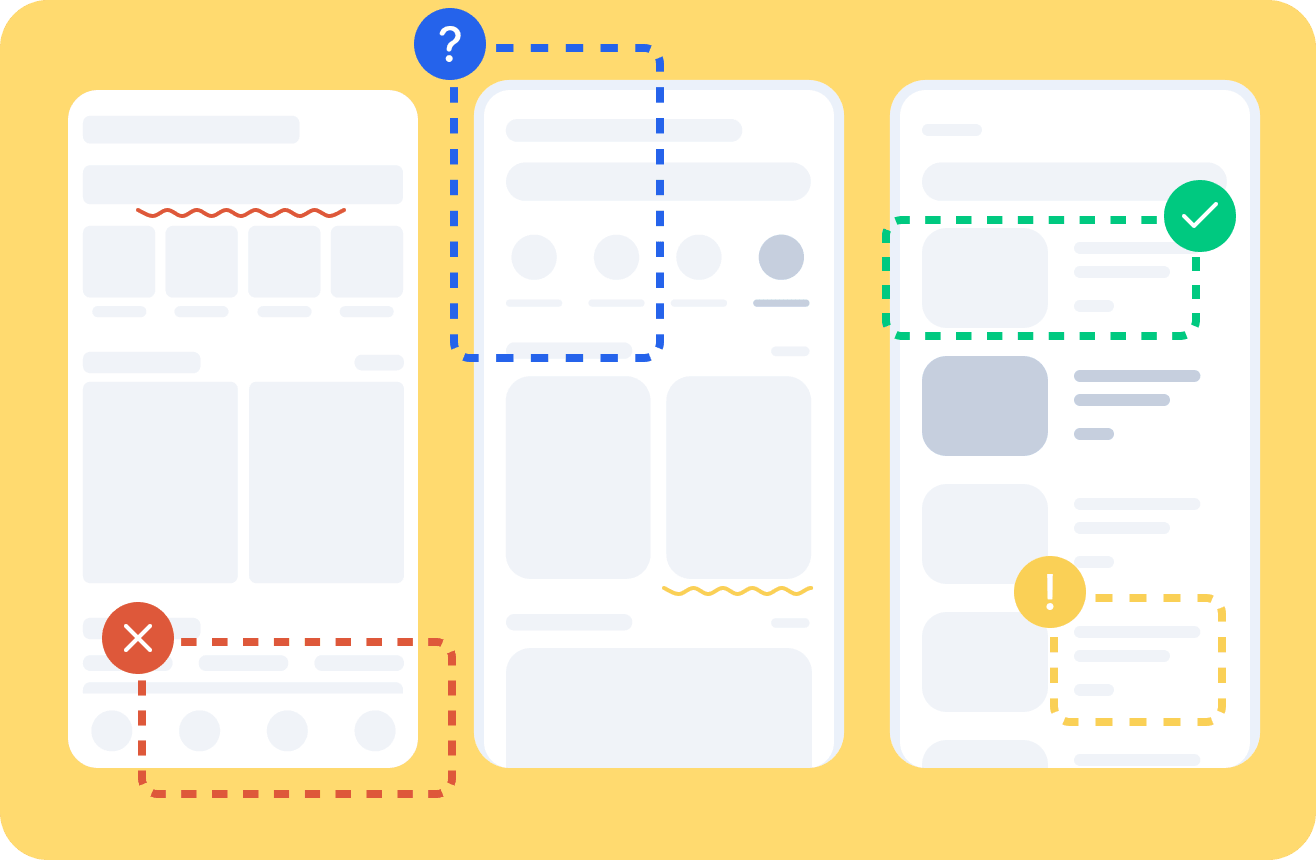 We conduct a heuristic evaluation based on industry standards and compare your app’s performance against competitors to highlight strengths and areas for growth.