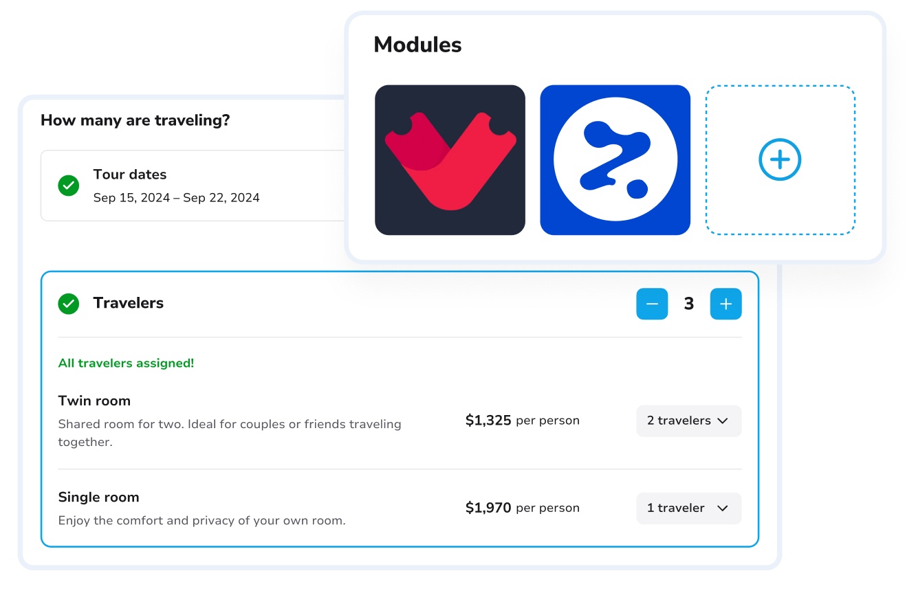Integration modules for platforms like FareHarbor, Ventrata, Rezdy, and others. Ensure a smooth booking experience while simplifying backend operations for your team.